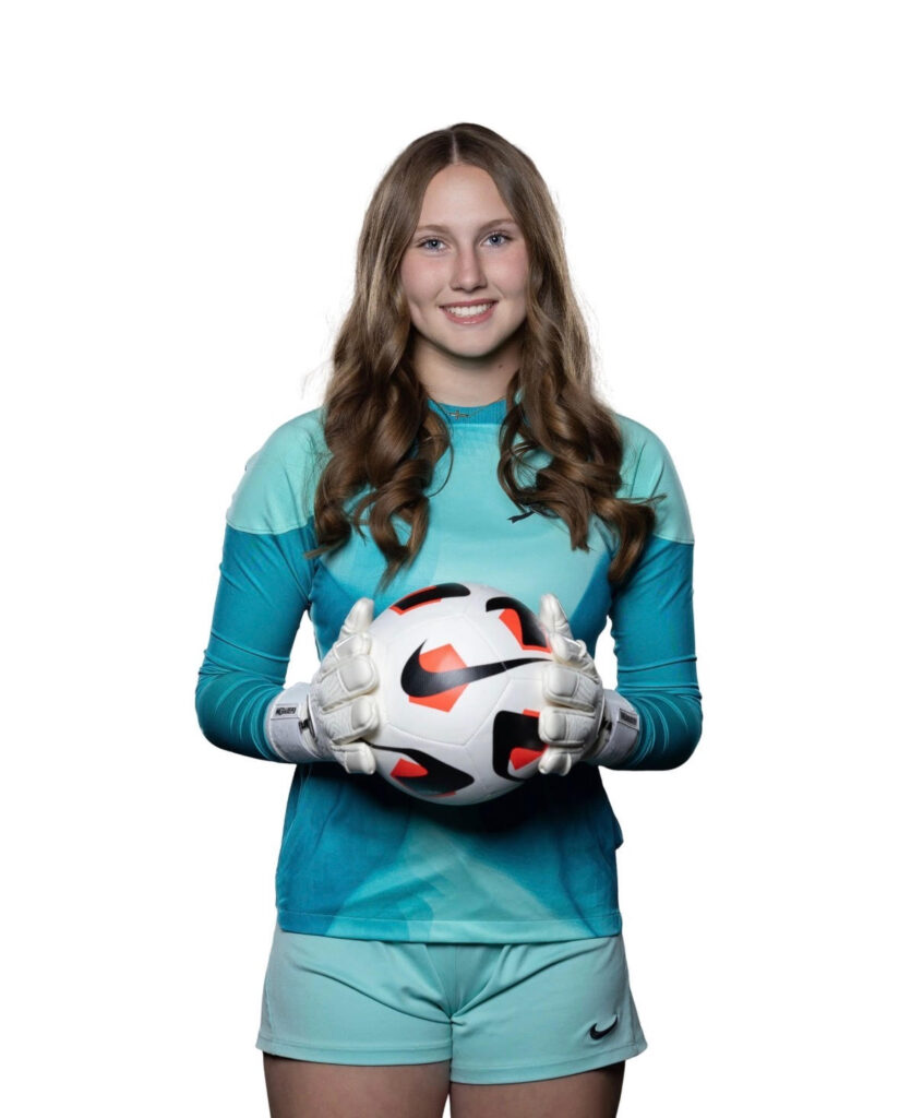 Admire, a varsity goalkeeper for Sapulpa High School, has played soccer for 12 years and embraces the pressure that comes with the position. She admits she “might be biased,” but she believes standing in goal is the toughest role on the field. Her favorite player, United States women’s national team goalkeeper Alyssa Naeher, sets the standard she chases each training session.
